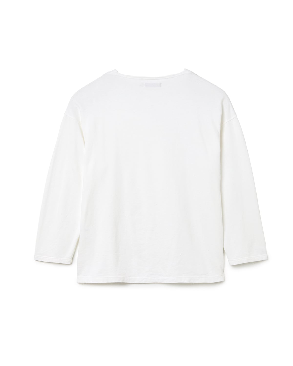 オーセンティックなボートネックのロングスリーブカットソー。薄手のコットン裏毛素材を使用し、Tシャツ1枚では肌寒い季節の変わり目に最適なトップスです。ネック端には補強とデザインを兼ねた杉綾テープを配し、身幅やアームにややゆとりを持たせたリラックスしたシルエットで仕立てられています。
